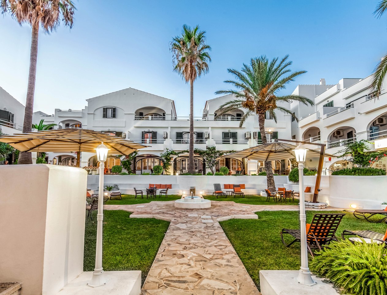 White Sands Beach Club is situated on the golden Blue Flag beach and secluded cove of Arenal d’en Castell on Menorca’s north coast. Designed in typical Menorcan style, this relaxed and friendly resort offers stunning sea views from the beachfront infinity pool and beautiful terraced gardens. It features an outdoor hot tub, mini golf, playground and free WiFi. With stunning views of the Mediterranean Sea, White’s Bar restaurant serves a range of Mediterranean and international cuisine in a friendly setting. Guests can enjoy a refreshing drink at the pool bar. For groceries, guests will find a local supermarket just 200 metres away.